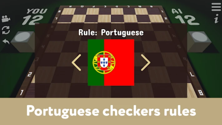 Play with classic rules of English, American, Brazilian, Portuguese, Russian checkers.