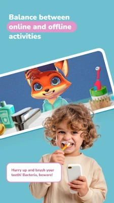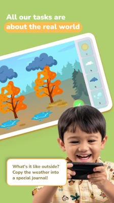 We do not use addictive mechanics and switch the child's attention to what is happening outside the screen. Our tasks teach that the real world is much more interesting than the virtual one.